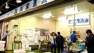 (株)栄進流通は、「豊かな食を創造し地域社会に貢献します」を理念に掲げ、仙台市中央卸売市場で仙水グループ企業として水産物仲卸業を営んでいます。安全、安心な生鮮食料品を安定的にお客様にお届けするため、役職員一同日々努力いたしております。また、売場内に低温の加工売場を設け、お客様の要望に応えるための一次加工処理を行っています。今後とも、お客様に信頼され、喜んでいただけるように努力し、仙水グループ企業の一員として社会貢献できるよう日々精進して参ります。