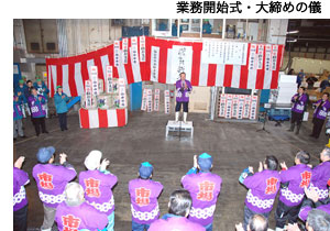 2011年1月5日午前6時半、新春恒例の仙台市中央卸売市場水産物部業務開始式が、市場開設者など行政関係者や市場関係者の皆さんら約500人が参加して盛大に行われました。