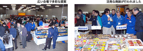 加工食品部は2月16日、仙台市場内でメーカー様110社にご出展いただき、ねり製品をはじめ、水産加工品、日配品、行楽シーズンに向けた商品のほか、旬を意識した様々な商品を展示・提案しました。市場関係者、小売店、外食関係の多数の方々が真剣な眼差しで売れる商品を吟味、活発な商談が見られました。