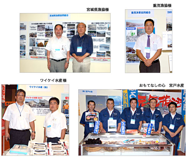 ある被災メーカーは「今ここに商品はありませんが、いずれこのパッケージと同じ商品を必ず出荷します」と強い意欲をみせ、来場者からは「話したかった。仙台水産にはこのような場を与えてもらいあ りがたい」などの声が聞かれたほか、被災荷主に激励する場面があちらこちらで見受けられました。