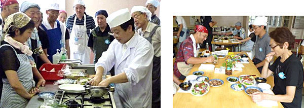 「もっと食べよう!みやぎの海の幸」をテーマに、カツオのタタキ・イカと大根の炊き合せ・わかめと青菜のお浸し・エビのすりみのお吸い物を作りました。受講者の皆さんはフライパンで簡単に作れるカツオのたたきと自分がさばいたイカに舌鼓をうち、旬を感じていました。