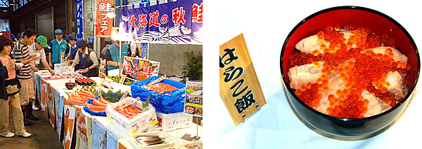 北海道漁業協同組合連合会様とミツカン様の協力により、秋の味覚「生秋鮭」の試食会を行いました。宮城県・亘理町を代表する郷土料理「はらこ飯」と「秋鮭と水菜のぶっかけぽん」を提供。このイベントは魚食普及活動の一環として、北海道道漁連様との連携で平成元年から23年間取り組んでいます。今後の入荷について生鮮事業本部・鈴木良徳本部長は「秋鮭定置網漁は8月24日に北海道で解禁になり、11月までの漁期です。今後順調な水揚げが期待できます。」と話しています。
