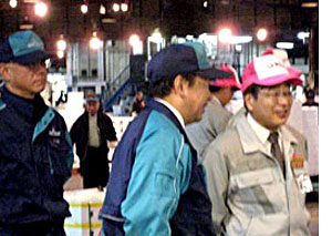 10月28日早朝、千葉宇京宮城県農林水産部長、宮川耕一食産業振興課長ら4人が仙台市中央卸売市場を訪れました。震災から7ヶ月を経過した宮城県内の生産者の様子について仙台市場を通して視察しました。水産棟鮮魚売場では、仙台水産が雄勝東部や田代島、宮戸地区の生産者支援に取り組んでいる状況などの説明を受けていました。
