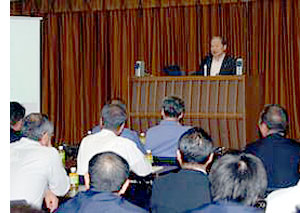 鈴木会長あいさつの後、島貫会長は「仙水グループが目指すもの」との演題で東日本大震災から学んだことなど9つのテーマに分け講演しました。講演会は会員42人、グループ各社、仲卸を含む86人が熱心に聴講する有意義な研修会となりました。