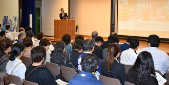 毎年、同時に開催される健康セミナーは、「食事の質でカラダが変わる」をテーマに、大塚製薬仙台支店・ニュートラシューティカルズ事業部の池永将士氏が講演しました。