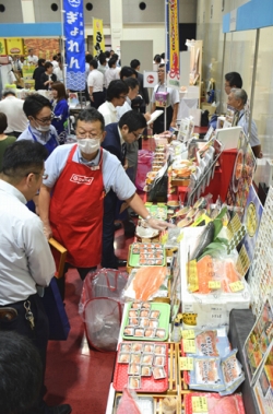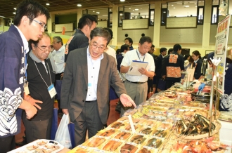 原料が比較的豊富なイワシやワタリガニに着目した商品提案、煮魚や焼き魚など簡便性を生かした水産惣菜を一堂に提案し、さらに健康コーナーでは魚の持つ栄養成分に着目したこだわり商品も提案しました。
