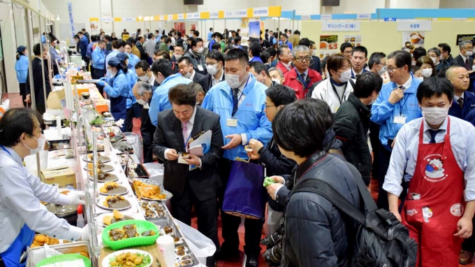 ▲お目当てのブース前では、試食や説明を求める大勢の来場者で賑わった