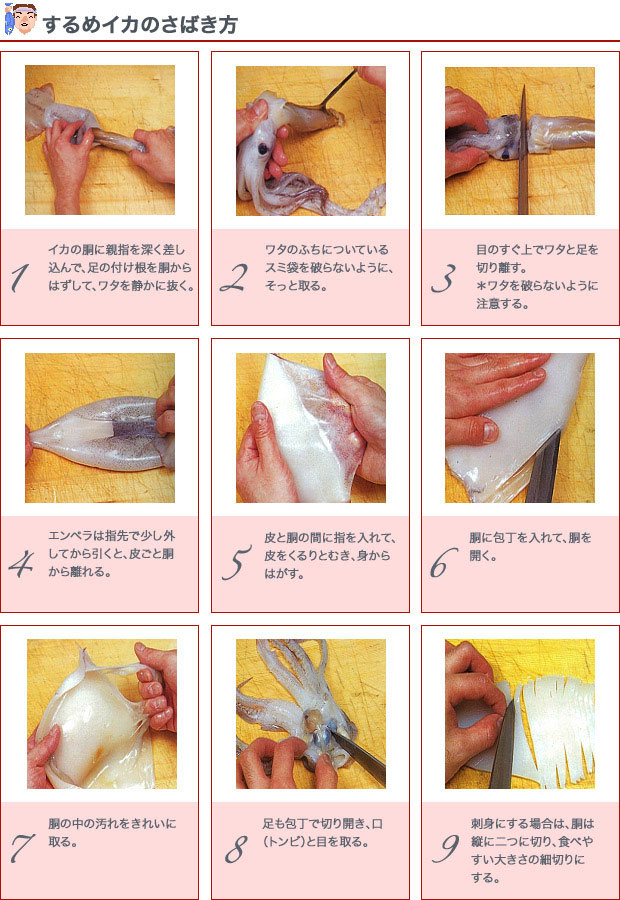みなさんに、おいしい旬の魚を存分に味わっていただきたい !! そんな思いから、ここでは、魚のおいしい食べ方・捌き方をご紹介します。 今回は「するめイカ」に焦点を当ててみました。 新鮮なするめイカをお刺身でどうぞ!