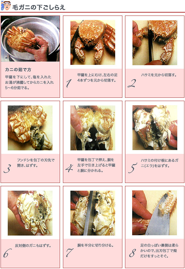 みなさんに、おいしい旬の魚を存分に味わっていただきたい !! そんな思いから、ここでは、魚のおいしい食べ方・捌き方をご紹介します。 今回は「毛ガニ」の下ごしらえの方法です。