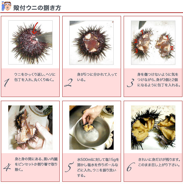 みなさんに、おいしい旬の魚を存分に味わっていただきたい !! そんな思いから、ここでは、魚のおいしい食べ方・捌き方をご紹介します。 今回は「殻付ウニ」です。