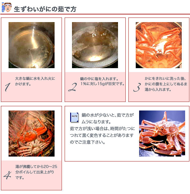 みなさんに、おいしい旬の魚を存分に味わっていただきたい !! そんな思いから、ここでは、魚のおいしい食べ方・捌き方をご紹介します。 今回は「生ずわいがに」です。