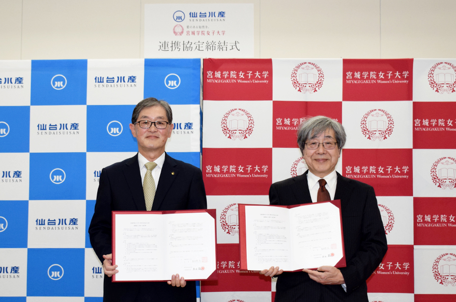 仙台水産は12月18日、宮城学院女子大学で、水産流通の活性化や水産物の商品開発、魚食普及活動などの推進を目指して同大学と産学連携協定を結びました。